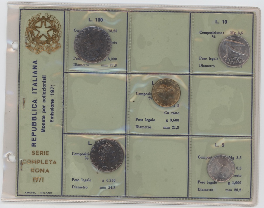 Italie série 1971 de 5 Lire à 100 Lire (unz)