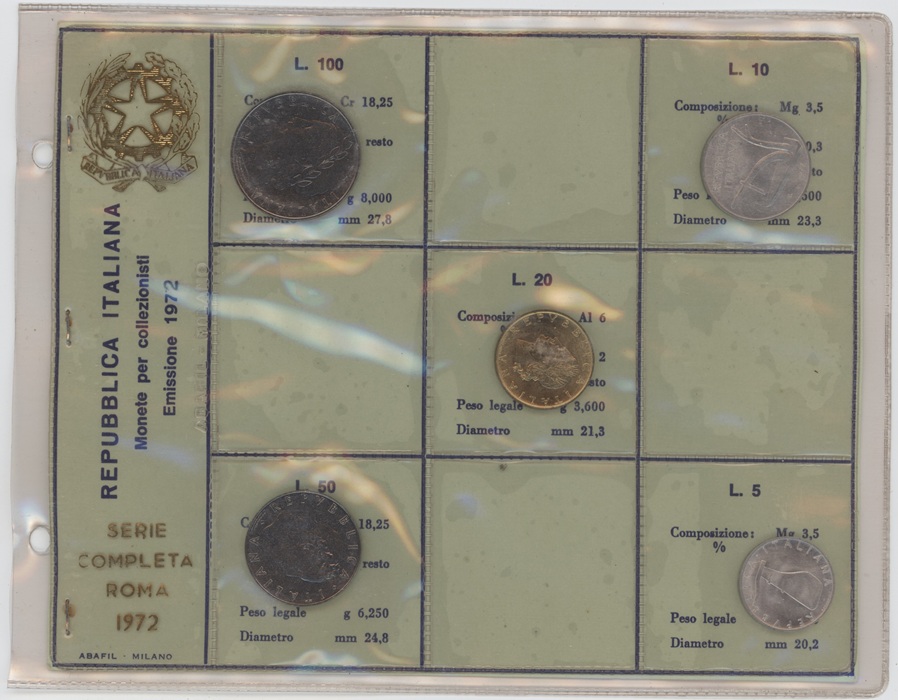 Italie série 1972 de 5 Lire à 100 Lire (unz)