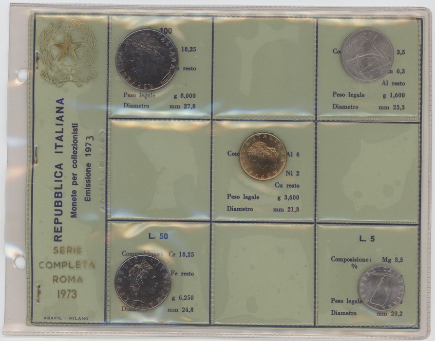 Italie série 1973 de 5 Lire à 100 Lire (unz)