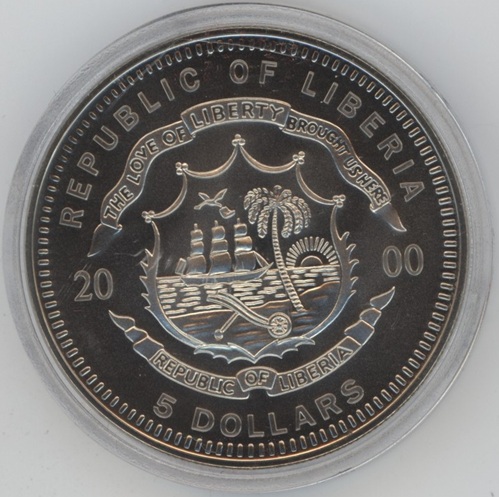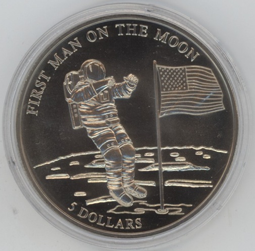Liberia 5 Dollars 2000 First Man On The Moon (unz) Copper-Nickel KM# 589