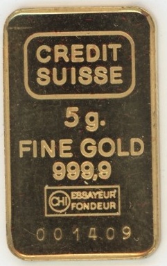 / Lingot 5g. Fine Gold 999,9 Crédit Suisse