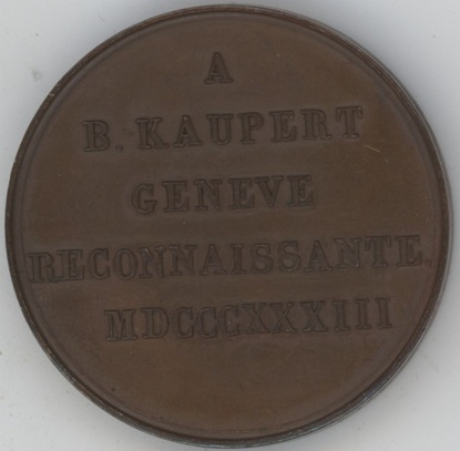 Médaille 1833 A B. Kaupert Geneve Reconnaissante cuivre (38gr)
