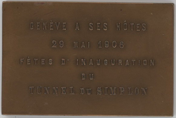 Médaille 1906 Genève à ses Hôtes Fête d’Inauguration du Tunnel du Simplon (vz) Br. (78.2gr)