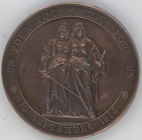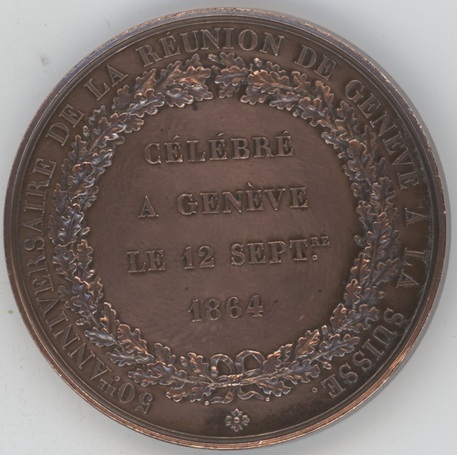 Médaille 50e Anniversaire du Rattachement de Genève à la Suisse 1864 (ss+) Bronze (55.6gr) BOVY Antoine