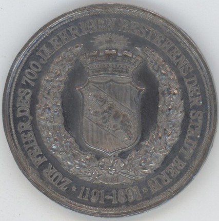 Médaille 700e Anniversaire de la fondation de la ville de Bern 1191-1891 (ss-vz) Etain F. Homberg.
