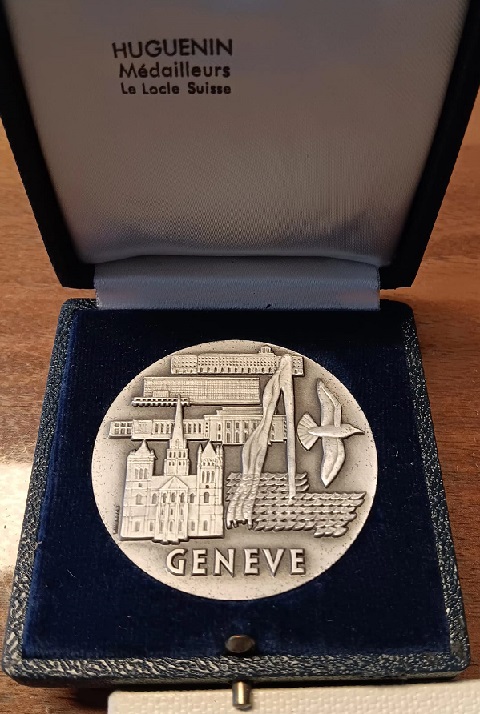 Médaille Autophilex 72 Salon International de l’Automobile Genève (unz) Br argenté Huguenin (54.8gr)