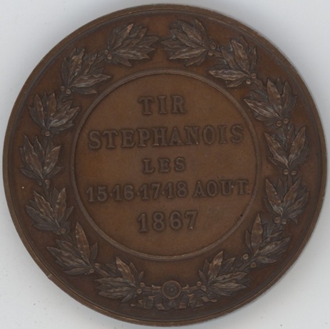 Médaille de Tir France St-Etienne Loire Tir Stéphanois 1867 (vz) cuivre (33.8gr)