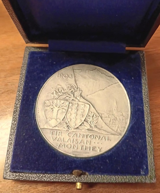 Médaille de Tir Valais Monthey 1903 (unz) en argent (38gr) Hans Frei / Richter (Schützenmedaillen) 1538 a