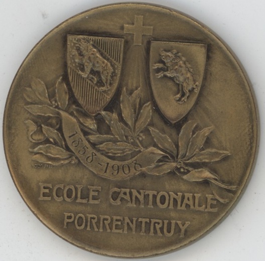 Médaille Ecole Cantonale Porrentruy 1858-1908 (ss-vz) 29.15gr
