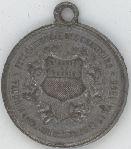 Médaille Fête Cantonale des Chanteurs Vaudois à Moudon 1886 (ss) petit coup sur la tranche Zn (14gr)