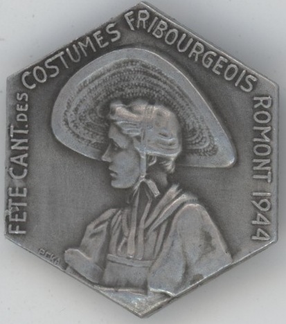 / Médaille Fête des Costumes Fribourgeois Romont 1944 (vz)