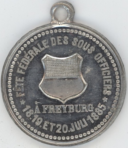 Médaille Fête Fédérale des Sous Officiers Fribourg 1885 (ss+) Etain (13.8gr)