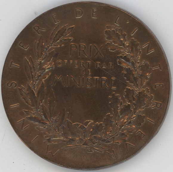 Médaille France Ministre de l’Intérieur Prix Offert par le Ministre (ss-vz) petit coup sur la tranche Cuivre ROTY Louis Oscar