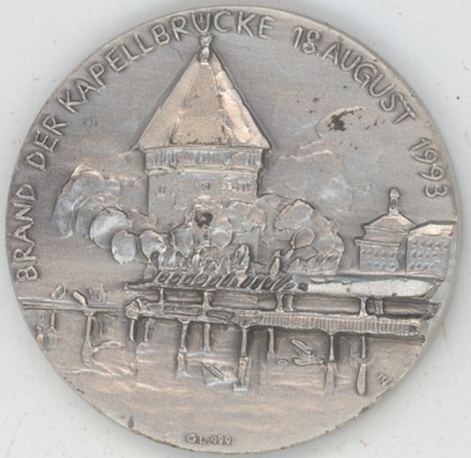 Médaille Luzern Brand der Kapellenbrucke 1993 (vz-unz) en argent 999 (18.35gr)