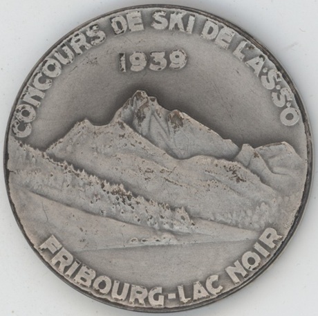 Médaille Militaire 1939 Concours de Ski de La S.S.O Fribourg Lac Noir (ss) Métal blanc (29.3gr) Huguenin