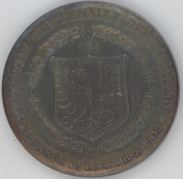 Médaille Troisième Centenaire de L’Escalade Genève 1902 (vz-unz) en argent Rare! (99.61gr)