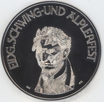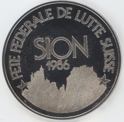 Médaille Valais Sion Fête Fédérale de Lutte Suisse 1986 (vz) en argent 900 (15gr)