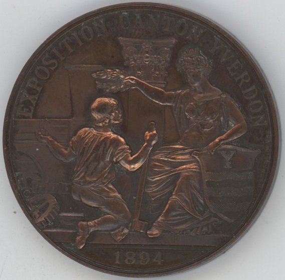 Médaille Vaud Exposition Cantonale Yverdon 1894 Industrie Agriculture Beaux-Arts (ss+) Bronze (60.3gr)