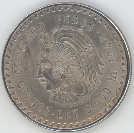 Mexico 5 Pesos 1948 (ss-vz) en argent 0.900 (30gr) KM# 470