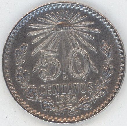 Mexico 50 Centavos 1935 (ss-vz) en argent 420 (7.97gr) KM# 448