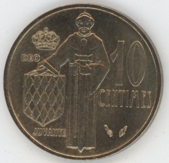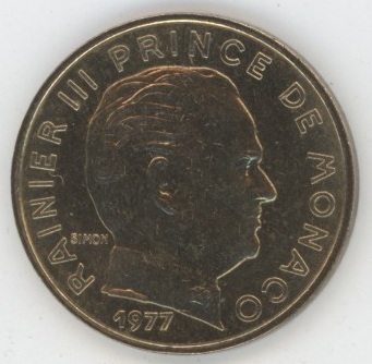 Monaco 10 Centimes 1977 Rainier III (vz-unz) Bronze Aluminium KM# 142