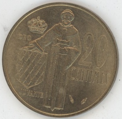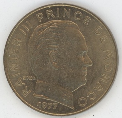 Monaco 20 Centimes 1977 Rainier III (vz-unz) Bronze Aluminium KM# 143