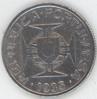 Mozambique Colonie de l’Empire Portugais 2,5 Escudos 1935 (ss) en argent 0.650 (3.5gr) KM# 61
