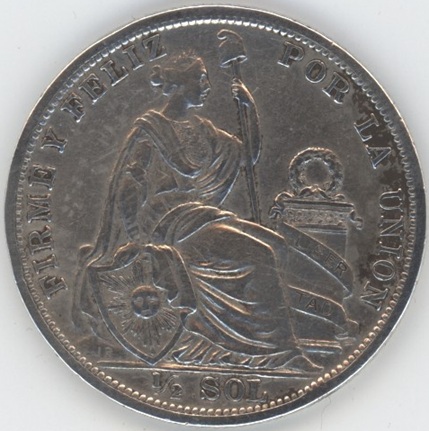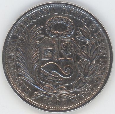 Pérou 1/2 Sol 1907 (ss+) en argent 0.900 (12,5gr) KM# 203