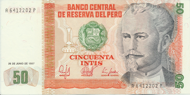 Pérou 50 Intis 1987 Neuf Information le numéro de série peut changer de celui de l’image