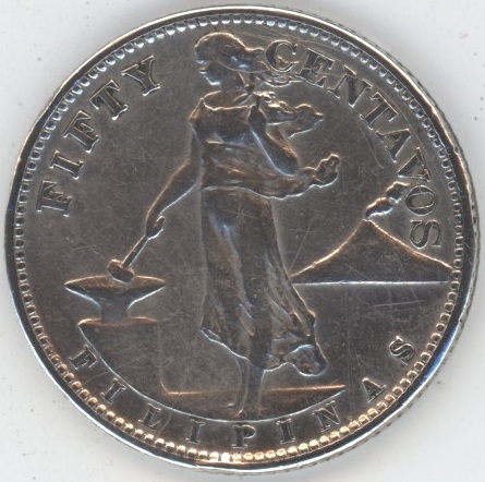 Philippines 50 Centavos 1944 Commonwealth (ss) petites rayures en argent 0.750 (10gr) KM# 183