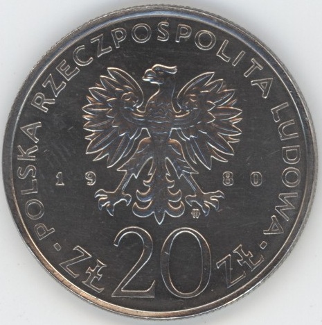 Pologne 20 Zlotych 1980 Jeux Olympiques de Moscou (ss-vz) Copper-Nickel Y# 108