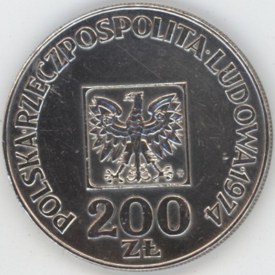 Pologne 200 Zlotych 1974 (ss-vz) en argent 0.624 (14.5gr) Y# 72