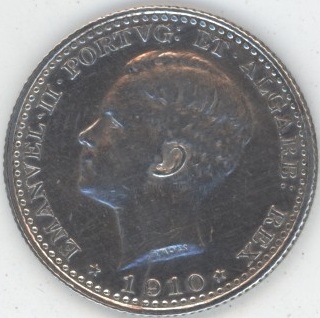 Portugal 100 Réis 1910 Manuel II (vz) en argent 0.835 (2.5gr) KM# 548