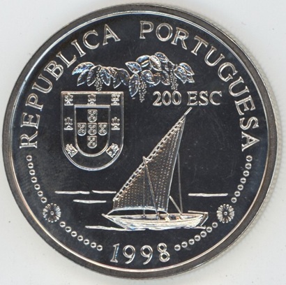 Portugal 200 Escudos 1998 Découverte de l’inde (vz-unz) en argent 0.925 (26.5gr) KM# 712a