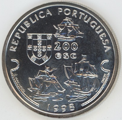 Portugal 200 Escudos 1998 Vasco de Gama (vz-unz) en argent 0.925 (26.5gr) KM# 709a