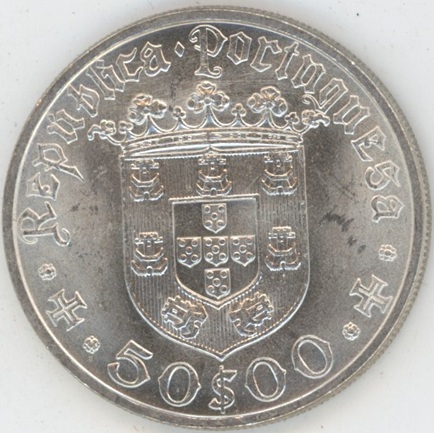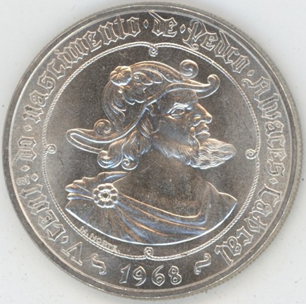 Portugal 50 Escudos 1968 Pedro Alvares Cabral (vz) en argent 0.650 (18gr) KM# 593