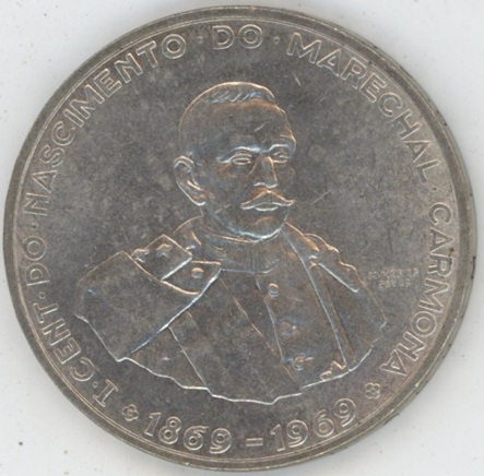 Portugal 50 Escudos 1969 Maréchal Carmona (vz) en argent 0.650 (18gr) KM# 599