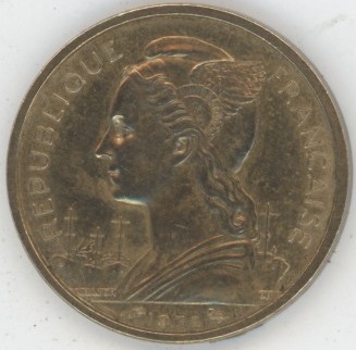 Réunion 10 Francs 1972 (ss+) Bronze Aluminium KM# 10a