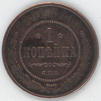 Russie 1 Kopek 1908 Nicholas II (ss)