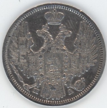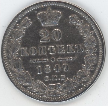 Russie 20 Kopeks 1849 Nicolas I (ss+) en argent 0.868 (4.14gr) C# 165