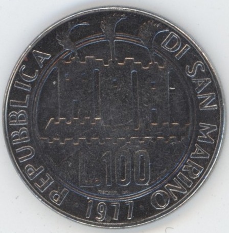 San Marino 100 Lire 1977 (vz-unz) Steel KM# 69