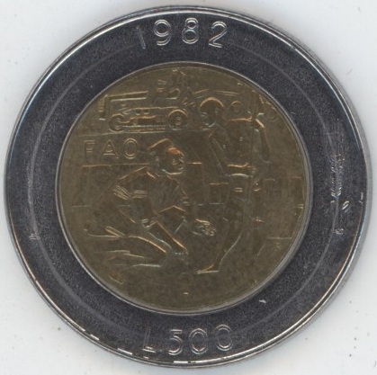 San Marino 500 Lire 1982 conquête sociale FAO (vz) Bi-Metallic KM# 140