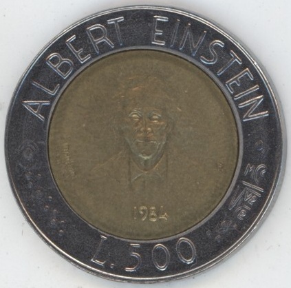 San Marino 500 Lire 1984 Albert Einstein (vz) Bi-Metallic KM# 167