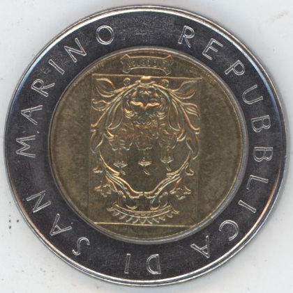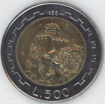 San Marino 500 Lire 1988 Fortifications (vz) Bi-Metallic KM# 226