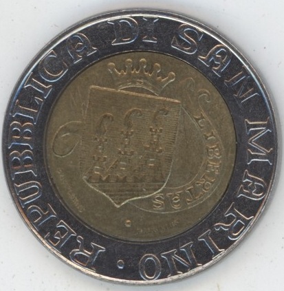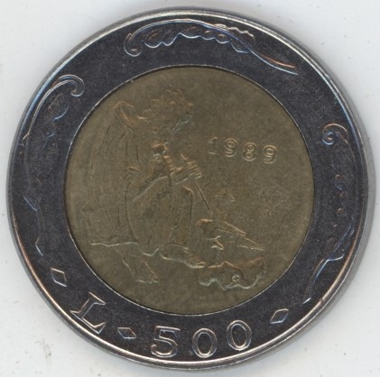 San Marino 500 Lire 1989 Histoire (vz) Bi-Metallic KM# 239