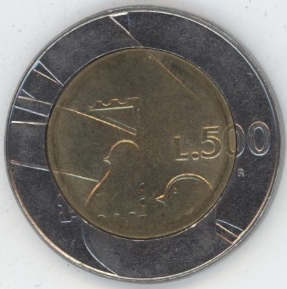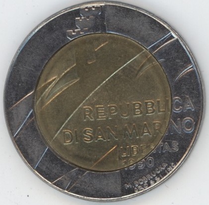 San Marino 500 Lire 1990 R 1600 ans d’histoire (vz) Bi-Metallic KM# 256