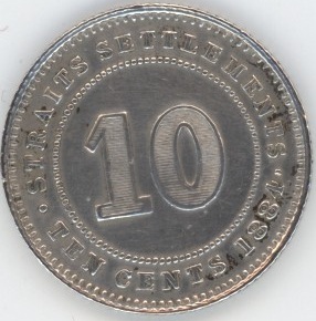Straits Settlements British Malaysia 10 Cents 1884 Victoria (ss+) en argent 0.800 (2.71gr) KM# 11