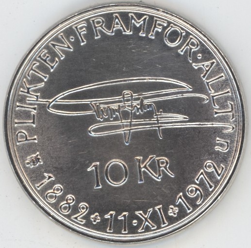 Suède 10 Kronor 1972 Anniversaire Gustav VI Adolf (ss-vz) en argent 0.830 (18.07gr) KM# 847