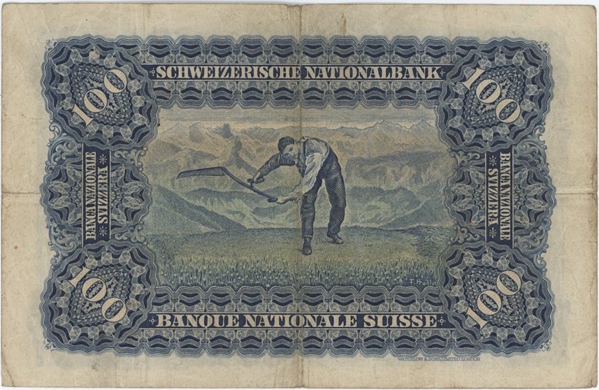 Suisse 100 Francs 1942 Faucheur 2ème émission utilisé