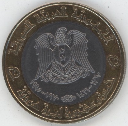 Syrie 25 Livres 1995 Hafez el Assad (vz) Bimétallique KM# 122